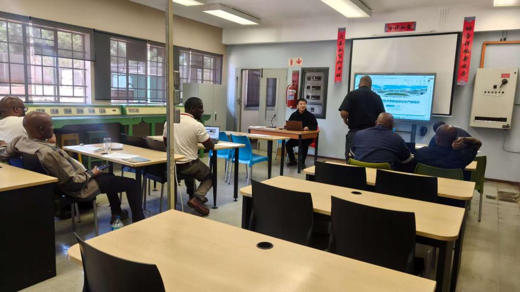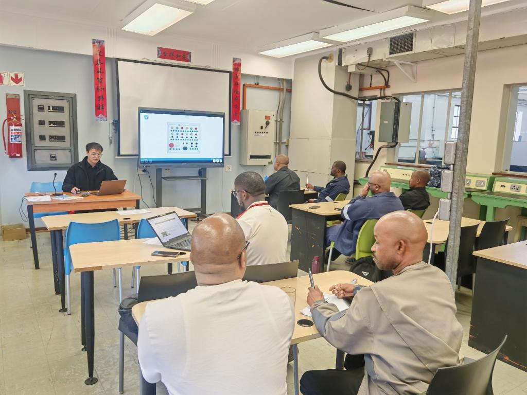 近日,我校光电制造学院教师金明磊,在南非中国文化和国际教育培训中心,为来自当地 6 所高校的教师群体开展了一场聚焦自动化教学领域的培训交流会。此次活动以技术为纽带,以交流为核心,不仅传递了自动化领域的前沿教学理念与实操经验,更搭建起我校与南非高校在职业技术教育领域深度对话的桥梁。