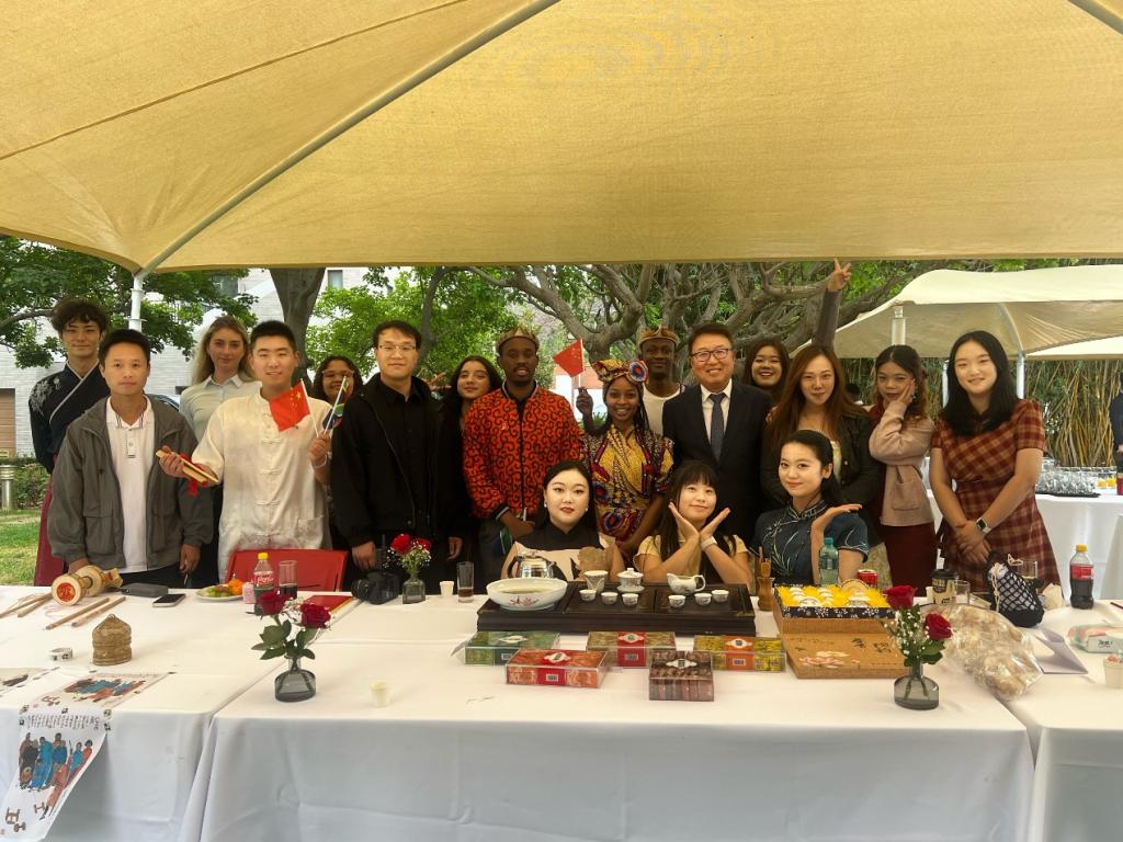 本次招待会中,南非中国文化和国际教育交流中心孔子课堂受邀为活动暖场献演中南歌曲串烧和中国舞,并设中国文化体验展台。