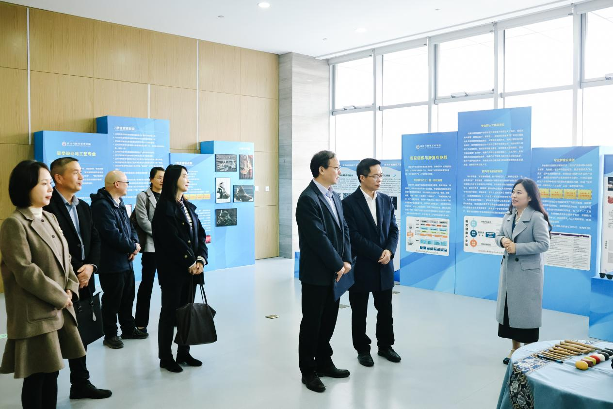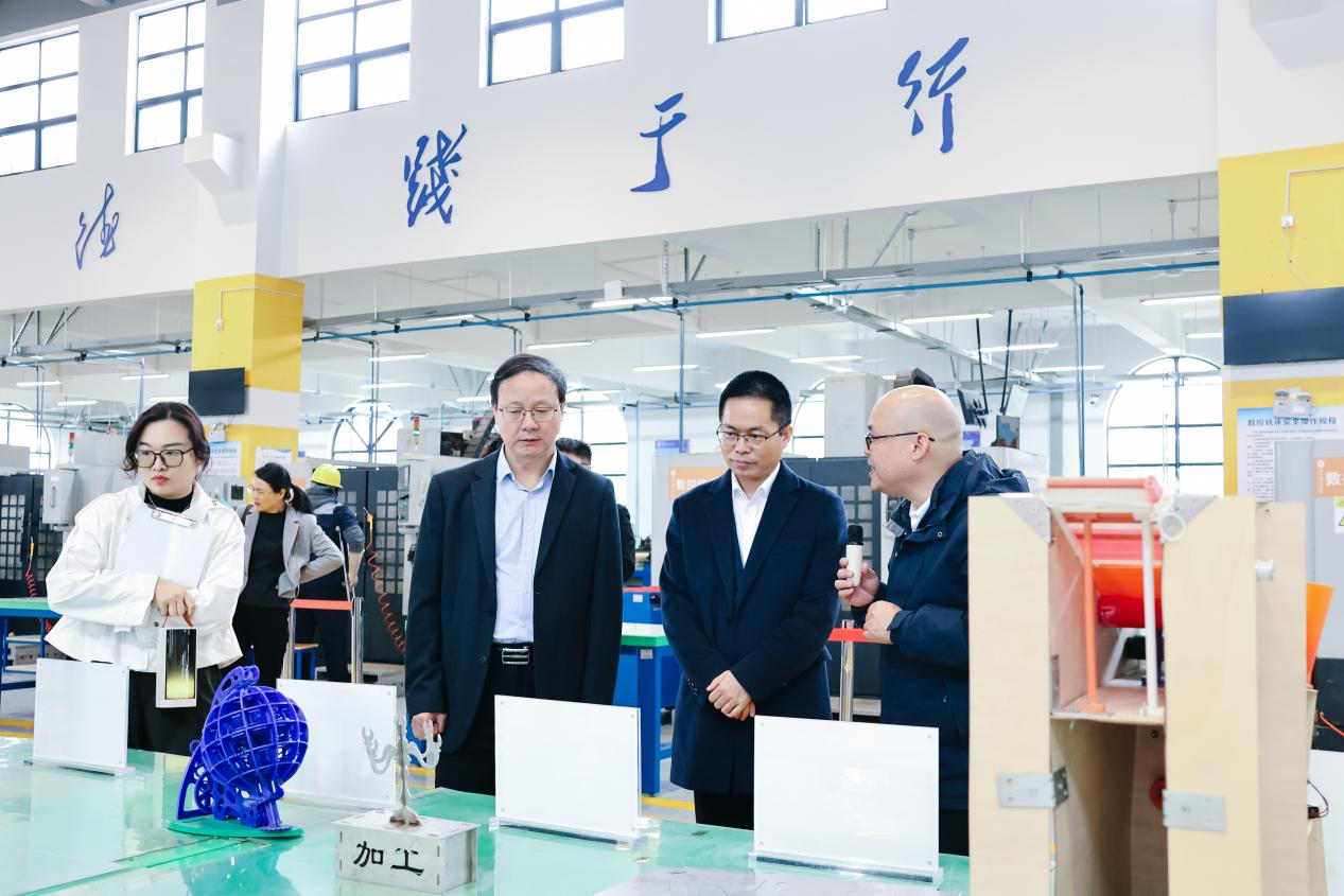 在余闯校长的陪同下,吴万雄一行在我校资讯楼听取了学校在推动国家“双高计划”专业群建设、深“链·群·平台”产教融合、结合地方优势产业打造高水平专业以及人才培养等方面的特色做法,充分肯定我校近年取得的办学成就。