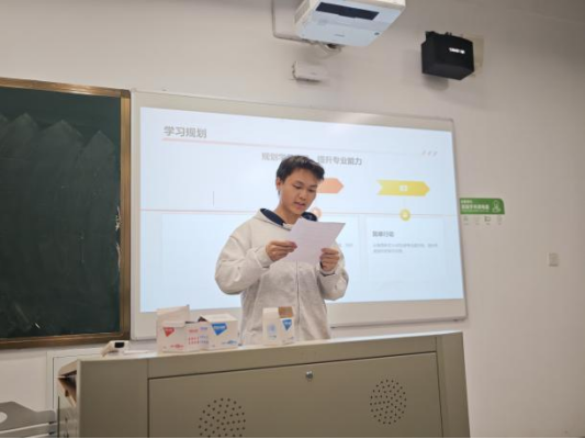 “翻转主持”的模式使活动主体得以回归学生,同学们在活动中不仅是思想的引领者,也成为法治精神的践行者。活动特别设置了“宪法晨读”环节,同学们在诵读中感悟宪法精神,筑牢法治信仰。在此基础上,。同学们围绕“专业迭代如何促进强国发展”展开讨论,同学们结合光电制造、新能源领域的技术迭代案例,各抒己见、碰撞思路。讨论环节结束后,同学们以小组为单位分享了个人学习规划:有人计划通过学科竞赛打磨实操能力,有人打算跟进专业相关行业的前沿论文,并将宪法学习纳入日常,将“专业报国”的方向细化为每月的学习目标,让远大理想落地为具体行动。