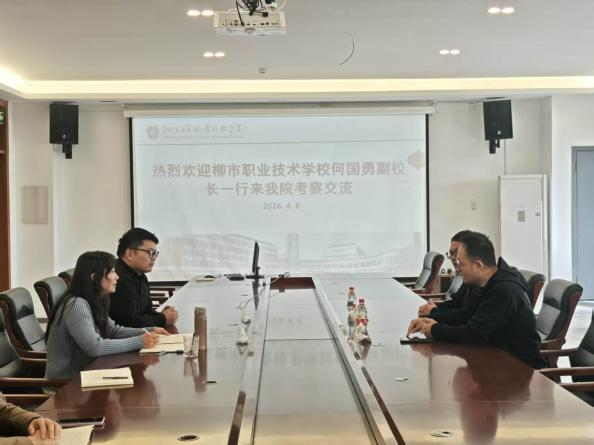 为深入推进中高职一体化人才培养,2026年4月8日上午,乐清市柳市职业技术学校副校长何国勇、教务处副处长杨帅率队赴浙江工贸职业技术学院光电制造学院开展交流研学活动。光电制造学院副院长金露凡、党总支副书记叶盛芳及专业负责人热情接待,双方围绕人才培养、技能竞赛、产教融合等议题展开深入研讨。